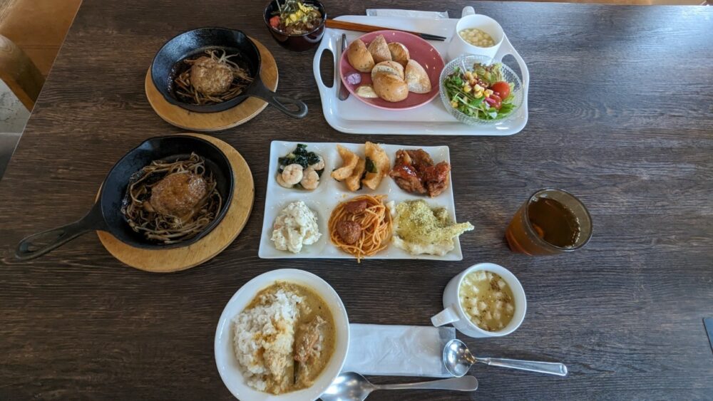 さらに驚きなのが鉄板で提供されるハンバーグ!ブランド牛「極牛」(アンガスビーフ)を100%使用した焼き立てジューシーなハンバーグを食べることができます。これが朝から食べられるなんて、なんて贅沢…