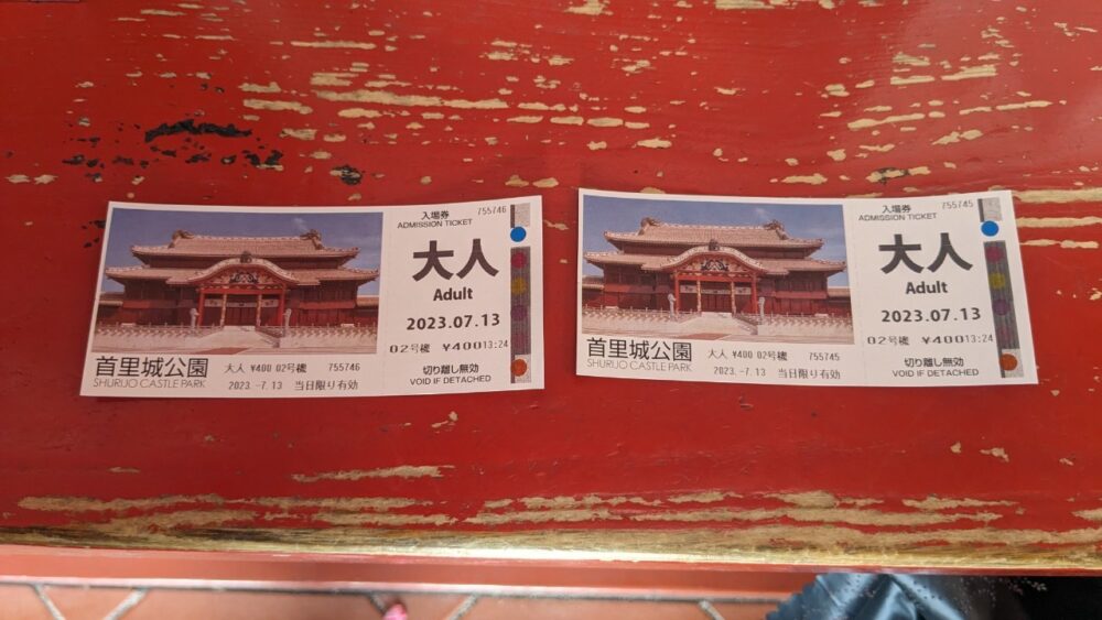 今回は県営首里城公園駐車場P2が空いていたため、そちらに停めることに。料金は400円。駐車時間は3時間以内らしいです。(※2024年7月1日より60分400円に変更)
