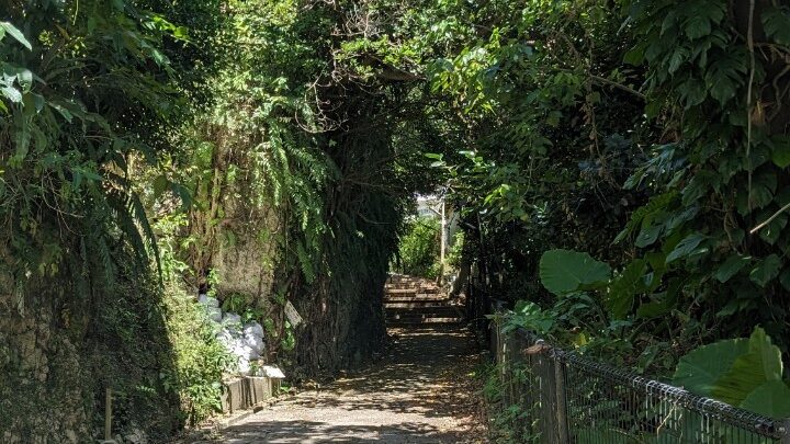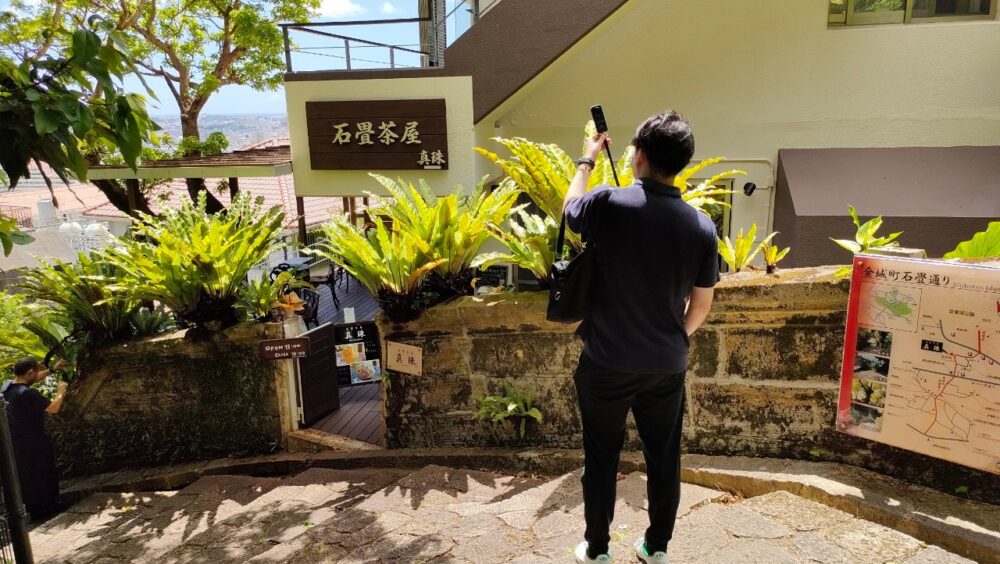 守礼門から駐車場の方面に戻っていく途中で小道に入ります。