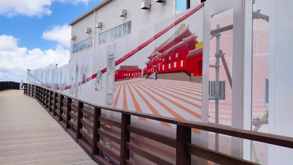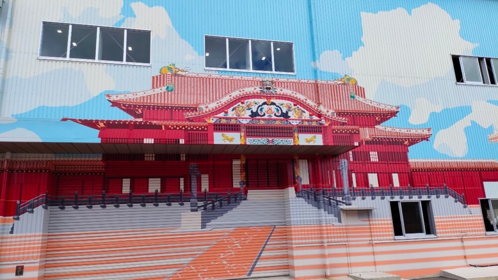復元工事エリアということで、首里城の絵が描かれた倉庫がありました(笑)